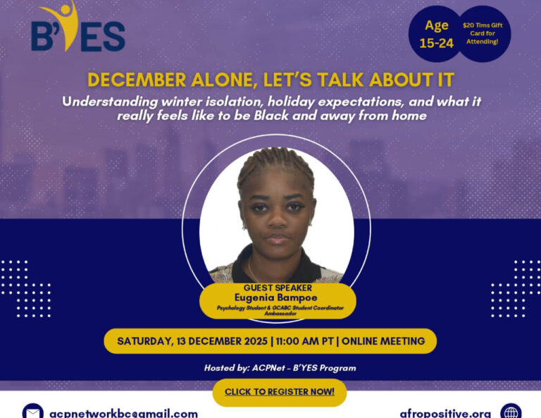 Understanding winter isolation, holiday expectations, and what it really feels like to be Black and away from home. Date: December 13th, 2025Time: 11: 00 amLocation: Virtual (Online session)